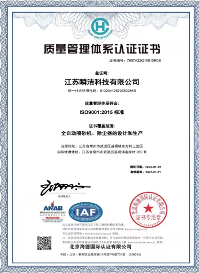 常州瞬潔機械針對渦輪表面處理,成功開發出了一款高效節能渦輪專用噴砂機,并且已經申
